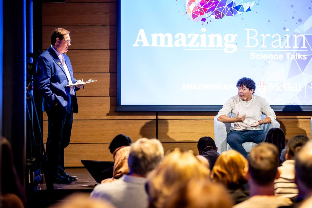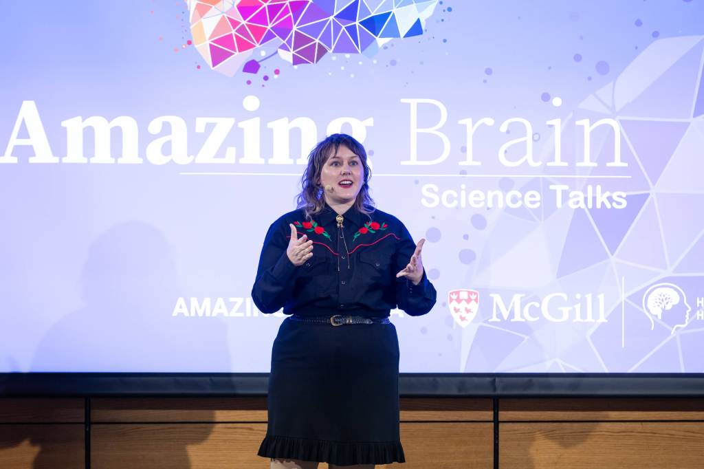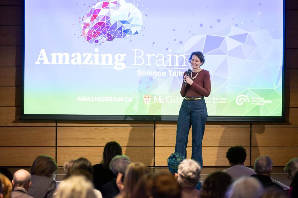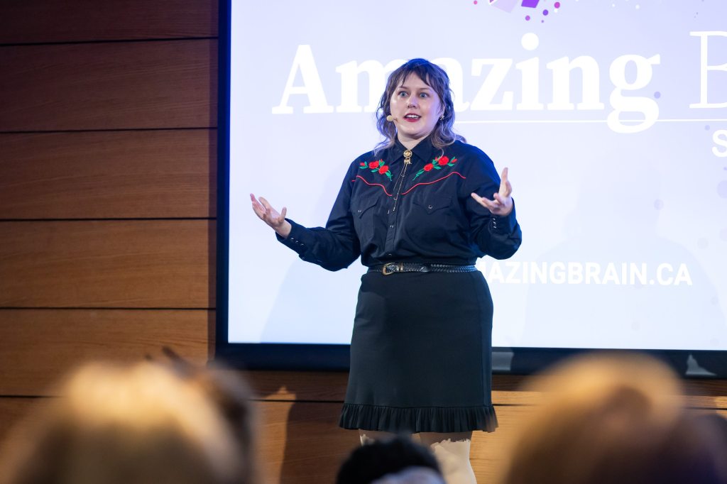 Les Amazing Brain Science Talks 2024 ont été organisées en partenariat avec la Fondation Brain Canada. Les conférencières et conférenciers ont abordé une grande variété de sujets, tels que la promotion de la santé mentale, le contact visuel dans les conversations et le vieillissement du cerveau. Parmi les conférencières et conférenciers de renom, citons Jibran Khokhar, de l’Université Western, qui a parlé des effets du cannabis et du vapotage chez les adolescents; Gabriel Blanco Gomez, qui a abordé la question plus que pertinente : « Pourquoi les humains recourent-ils au langage? »; et Katie Jensen, animatrice et rédactrice en chef du balado Playing with Marbles de la Fondation Brain Canada, qui a raconté de façon marquante son expérience du trouble obsessionnel compulsif (TOC).