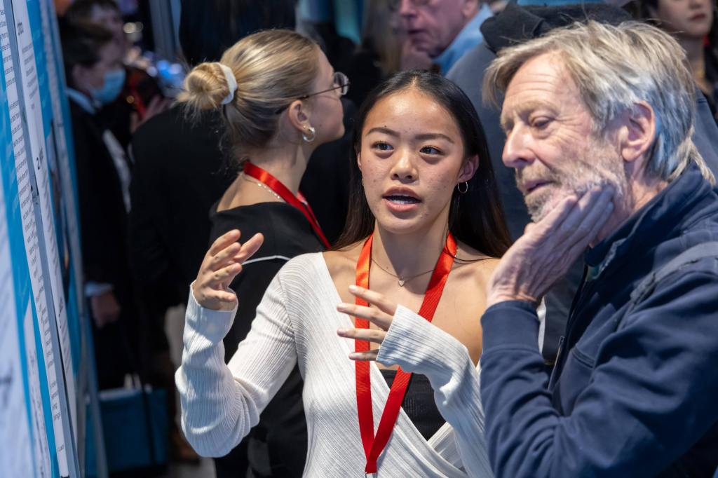 L’édition 2024 des Amazing Brain Science Talks proposait également des activités interactives après les conférences, notamment des présentations par affiches et une exposition d’œuvres d’art. Des étudiantes et étudiants du stage estival de recherche pour étudiants de premier cycle 2024 (USRI) de HBHL ont présenté leurs recherches au public, parallèlement à l’exposition Cerebronze, une installation artistique tridimensionnelle en bronze et en acier conçue à partir de scintigraphies cérébrales réalisées par des étudiantes et étudiants des universités McGill et Concordia.